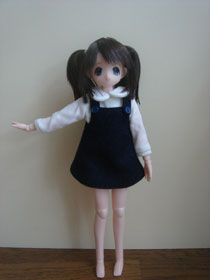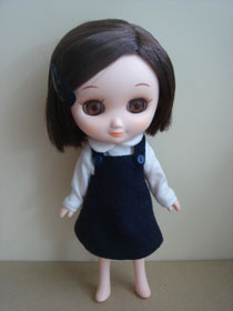 オビツ21ボディのちさに着てもらいました。(服は「しょうわのおでこちゃん」のデフォルト服です)