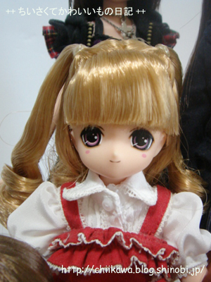 スィーツ柄のジャンパースカートに、くるくるロールヘア。